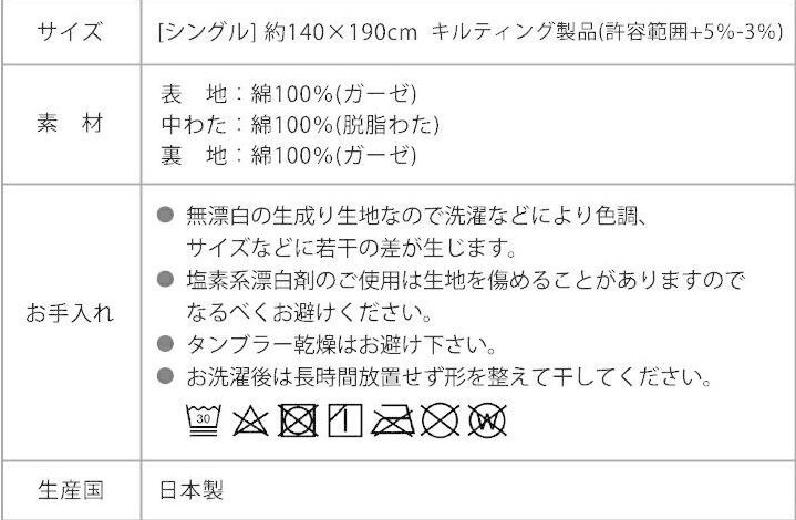 《日本製 和泉木綿 無添加無漂白オーガニックコットンガーゼケット》