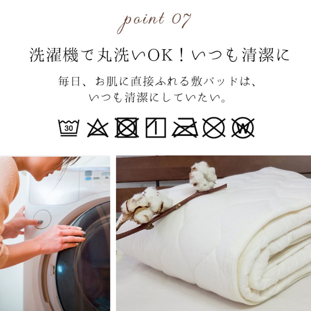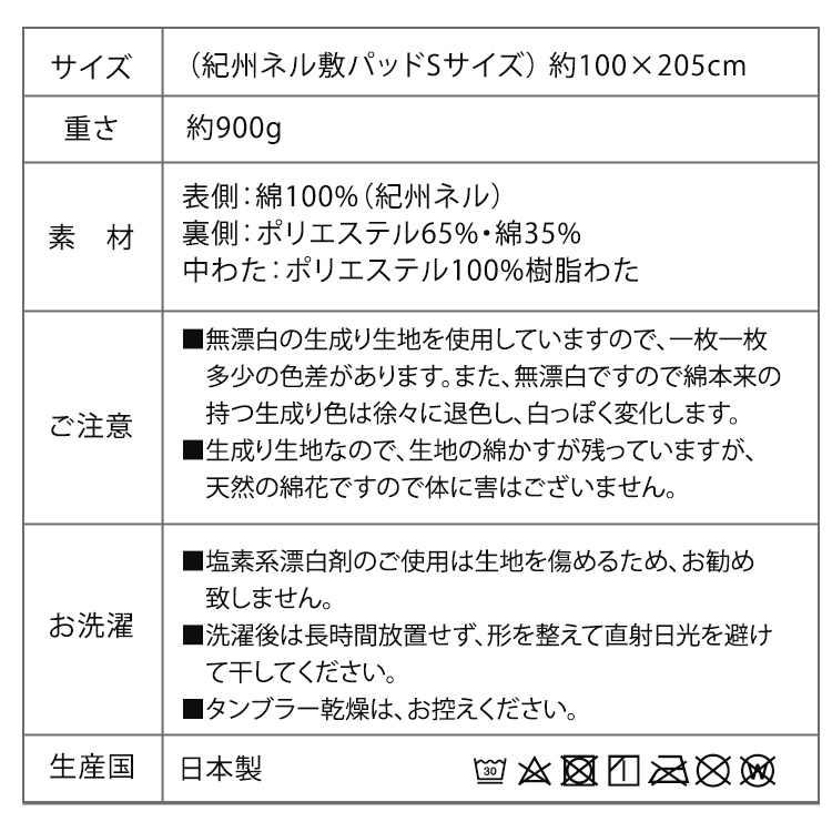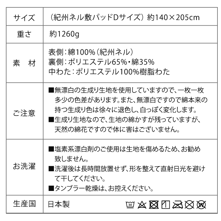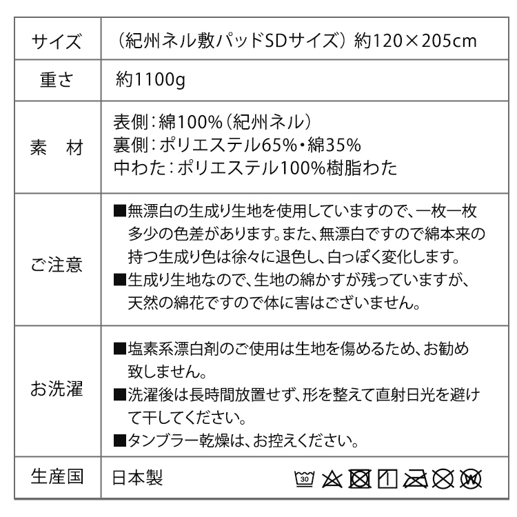 《日本製 和泉木綿・紀州ネルの安心コットン100%敷パッド》 カラー:キナリ