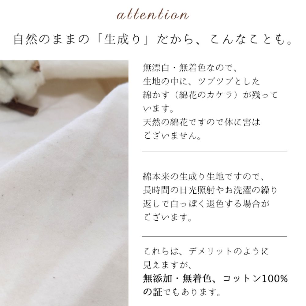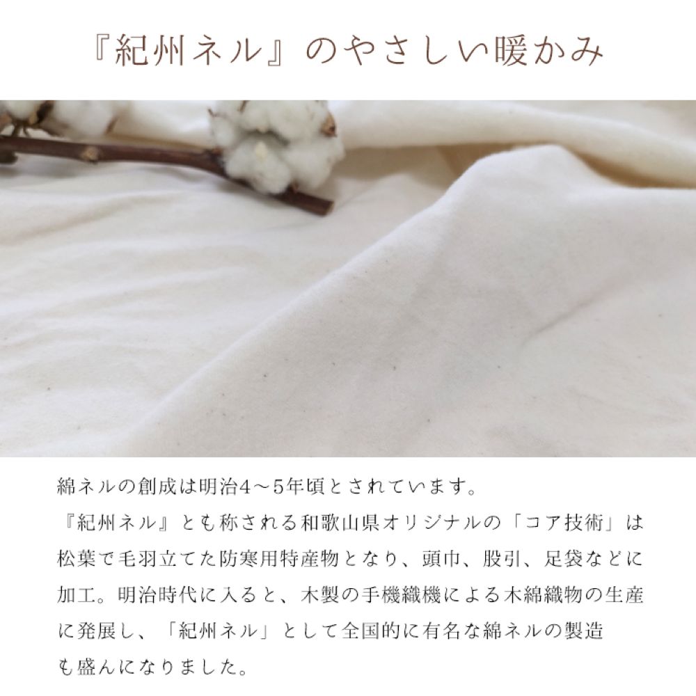 【素材】 表生地:綿100%起毛 紀州ネル(無漂白・無着色)和泉木綿