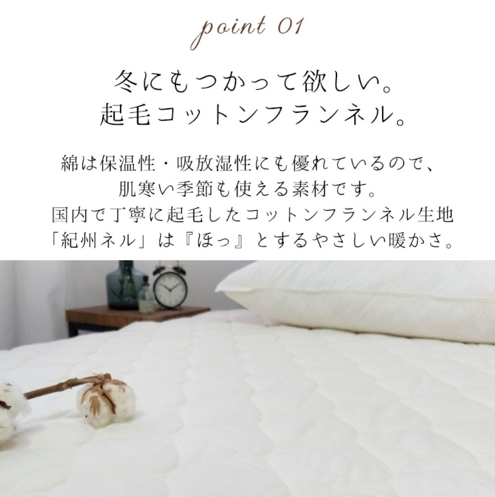 無漂白・無着色の生成りにこだわった コットン100%の【紀州ネル】敷パッドが新登場!