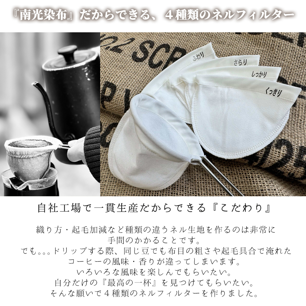 ネルドリップ ネルフィルター 紀州ネル 日本製 コーヒードリップ コーヒーフィルター ドリップフィルター コーヒードリッパー ハンドドリップ コーヒー器具 珈琲器具 コーヒー抽出 ドリップコーヒー 本格コーヒー コーヒー用品 コーヒー道具 布フィルター エコフィルター 繰り返し使える ステンレスハンドル ドリップキット フィルターキット コーヒーセット ドリップセット 喫茶店仕様 プロ仕様 自家焙煎 コーヒー好き 家庭用ドリップ コーヒー時間