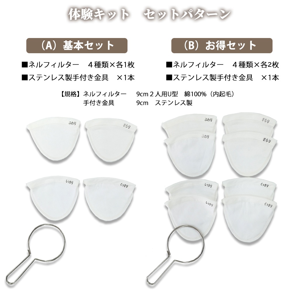 このセットはネルが4種類。気分や豆、焙煎、抽出レシピに合わせて使い分けることで、同じ豆でも「今日はクリア寄り」「明日はコク寄り」といった、自分だけの正解を探せます。